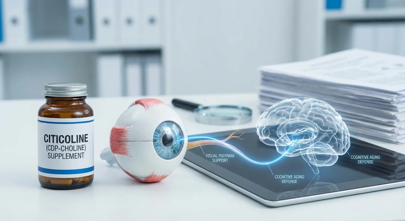 Citicoline, also known as CDP-choline, is a naturally occurring compound that supports nerve cell function. It serves as a key precursor for phospholipids — essential components of cell membranes — and boosts levels of important neurotransmitters in the brain. In the visual system, citicoline has drawn attention as a possible neuroprotective agent for retinal ganglion cells (RGCs) affected by glaucoma and other optic neuropathies (pmc.ncbi.nlm.nih.gov) (pmc.ncbi.nlm.nih.gov). Likewise, in the aging brain, citicoline’s membrane-repair and neurochemical effects have been investigated for preserving memory and cognition with age (pmc.ncbi.nlm.nih.gov) (pmc.ncbi.nlm.nih.gov). This article reviews clinical and experimental evidence that citicoline can improve RGC function (often measured by visual fields and electrophysiologic tests) and explores how its cellular mechanisms (membrane repair and dopaminergic modulation) may also benefit age-related cognitive decline. We also consider practical issues of dosing, safety, adherence, and how long any benefits last once treatment stops.